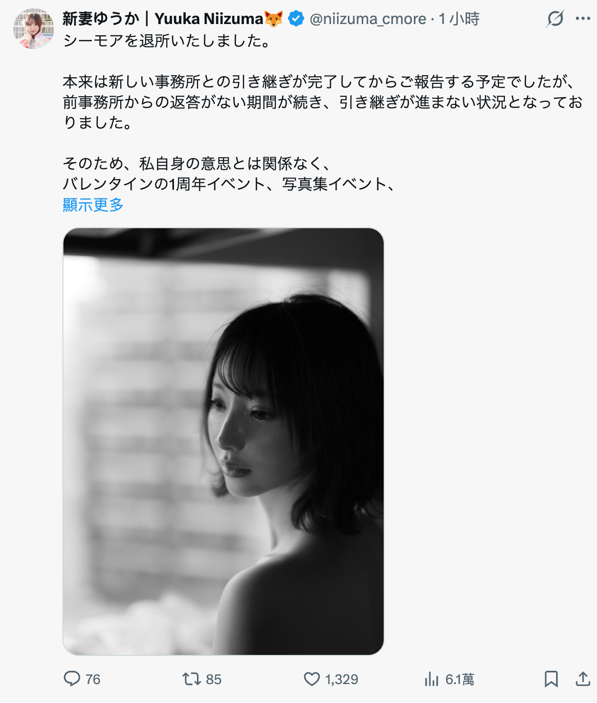 The results are in. Yuuka Niizuma announced her departure from her former agency C-More, She quickly switched her social media…